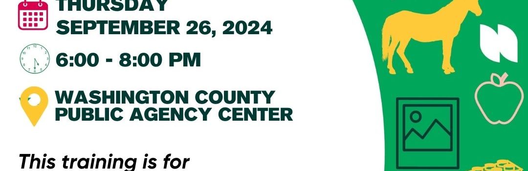 Here’s a great opportunity for 4-H project leaders to learn more about their roles, responsibilities, lesson planning, making learning engaging, and working with youth leaders. Washington County 4-H relies on and recognizes adult 4-H volunteers who bring knowledge, experience, and passion to work with youth. You are one of the most important influences on youth development and educational outcomes in our program!! We are committed to supporting our volunteers to facilitate high quality youth development and learning experiences for Washington County 4-H youth members. Sign up today for this very worthwhile training: Sept 26 4-H Project Leader Training RSVP